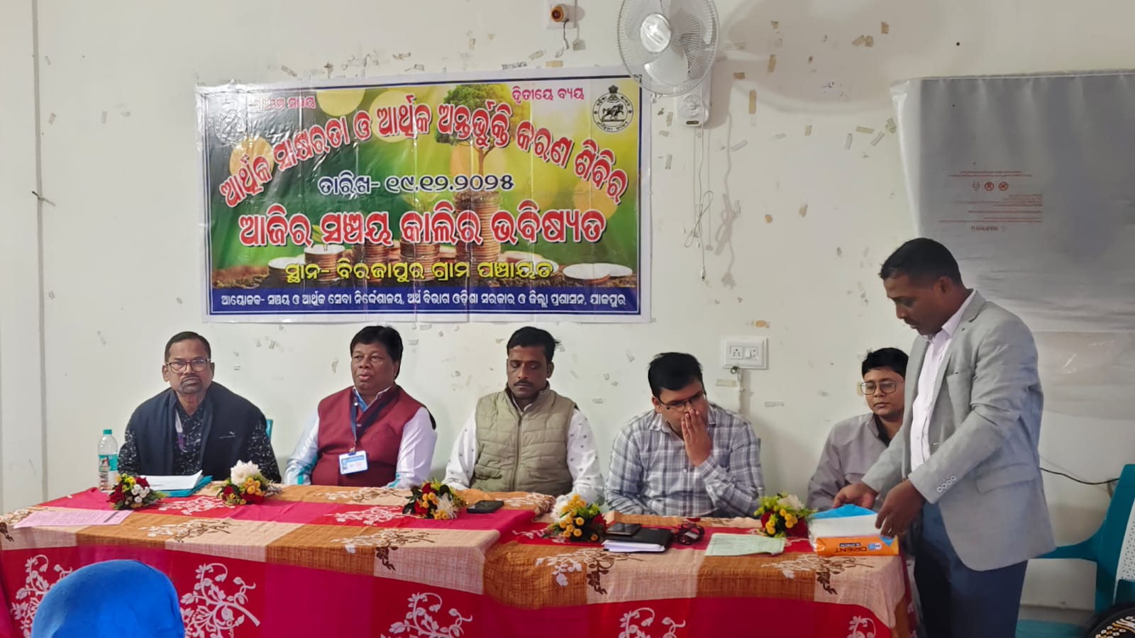 ଯାଜପୁର, ତା ୨୦.୧୨.୨୦୨୫ ରିଖ: ଗତ କାଲି ଯାଜପୁର ଜିଲ୍ଲା ପ୍ରଶାସନ ତରଫରୁ ଦଶରଥପୁର ବ୍ଲକ ବିରଜାପୁର ଗ୍ରାମ ପଞ୍ଚାୟତ ସଭା ଗୃହରେ ଜିଲ୍ଲା ଆର୍ଥିକ ସେବା ସଞ୍ଚୟ ଅଧିକାରୀ ଶ୍ରୀ ଜ୍ଞାନ ରଞ୍ଜନ ସେଠୀଙ୍କ ଅଧ୍ୟକ୍ଷତାରେ ଏକ ଆର୍ଥିକ ଅନ୍ତର୍ଭୁ୍ତିକରଣ ଶିବିର ଅନୁଷ୍ଠିତ ହୋଇଯାଇଅଛି। ଏଥିରେ ମୁଖ୍ୟ ଅତିଥି ରୂପେ ବିରଜାପୁର ଗ୍ରାମ ପଞ୍ଚାୟତର ସରପଞ୍ଚ ଶ୍ରୀ ନିରାକାର ସାହୁ, ଅଗ୍ରଣୀ ବ୍ୟାଙ୍କ ପରିଚାଳକ ଶ୍ରୀ ରାଧାନାଥ ନାୟକ, ଆର୍ଥିକ ସଚେତନତା ସଂଯୋଜକ(ଏଫ୍.ଏଲ.ସି) ଶ୍ରୀ ସୁବାଷ ଚନ୍ଦ୍ର ଦାସ, ଇଣ୍ଡିଆ ପୋଷ୍ଟାଲ୍ ପେମେଣ୍ଟ ବ୍ୟାଙ୍କ୍ ପରିଚାଳକ ଶ୍ରୀ ଚିନ୍ତାମଣି ପାଗଳ, ଅତିରିକ୍ତ ଇଣ୍ଡିଆ ପୋଷ୍ଟାଲ୍ ପେମେଣ୍ଟ ବ୍ୟାଙ୍କ୍ ପରିଚାଳକ ଶ୍ରୀ ବିଟନ୍ ହାରୀ ଏବଂ ଡାକ ବିଭାଗର ବିଜନେସ କରେସପଣ୍ଡେନ୍ସ ଶ୍ରୀ ଅମିୟ କୁମାର ଦାସ ଯୋଗ ଦେଇଥିଲେ। ଡାକ ବିଭାଗରେ କେନ୍ଦ୍ର ସରକାରଙ୍କ ବିଭିନ୍ନ ସଞ୍ଚୟ ଯୋଜନା ତଥା ଆରଡ଼ି, ମିଆଦି ଜମା, କିଷାନ ବିକାଶ ପତ୍ର, ମାସିକ ଆୟ ଯୋଜନା, ସୁକନ୍ୟା ସମୃଦ୍ଧି ଯୋଜନା, ବରିଷ୍ଠ ନାଗରିକ ସଞ୍ଚୟ ଯୋଜନାର ସଫଳତା ସମ୍ପର୍କରେ ଆଲୋଚନା କରାଯାଇଥିଲା। ଏଥିରେ ମୁଖ୍ୟତଃ ଲୋକମାନେ କିପରି ତାଙ୍କ ସଂଚିତ ଧନକୁ ସୁରକ୍ଷିତ ଭାବରେ ଜମା କରି ପାରିବେ ଏହା ସହିତ ସାମାଜିକ ସୁରକ୍ଷା ଯୋଜନା ଯଥା: ଅଟଳ ପେନସନ ଯୋଜନା, ପ୍ରଧାନମନ୍ତ୍ରୀ ସୁରକ୍ଷା ବିମା ଯୋଜନା, ପ୍ରଧାନମନ୍ତ୍ରୀ ଜୀବନଜ୍ୟୋତି ଯୋଜନା ବିଷୟରେ ଆଲୋକପାତ କରାଯାଇଥିଲା। ଏହି ଆର୍ଥିକ ସଚେତନତା ଶିବିରରେ ବିରଜାପୁର ପଞ୍ଚାୟତର ମହିଳା ସ୍ଵୟଂ ସହାୟକ ଗୋଷ୍ଠୀ, ସ୍ଵଳ୍ପ ସଞ୍ଚୟର ଅଭିକର୍ତ୍ତା, ଜନସାଧରଣ ଉପସ୍ଥିତ ରହି ସ୍ୱଳ୍ପ ସଂଚୟର ଉପକାରିତା ଉପରେ ଅବଗତ ହୋଇଥିଲା। ଲୋକମାନଙ୍କୁ ଚିଟ ଫଣ୍ଡ ଅନଲାଇନ ଠକେଇ, ସାଇବର ଠକେଇ ଠାରୁ ଦୂରେଇ ରହିବା ପାଇଁ ପରାମର୍ଶ ଦିଆଯାଇଥିଲା। ଶେଷରେ ବିରଜାପୁର ସରପଞ୍ଚ ଶ୍ରୀ ନିରାକାର ସାହୁ ଧନ୍ୟବାଦ୍ ଅର୍ପଣ କରିଥିଲେ। ଏହି କାର୍ଯ୍ୟକ୍ରମରେ ସ୍ୱଳ୍ପ ସଞ୍ଚୟ ଅଭିକର୍ତ୍ତା ଶ୍ରୀ ଗିରିଜା ପ୍ରସାଦ ବଳ, ଶ୍ରୀ ମାୟାଧର ପାଣିଗ୍ରାହୀ, ଦୁଃଖୀରାମ ଶତପଥୀ, , ଶ୍ରୀମତୀ ସ୍ଵପ୍ନାମୟୀ ବାରିକ, ଶ୍ରୀମତୀ ପ୍ରଭାତୀ ଶତପଥୀ, ଶ୍ରୀମତୀ ବିଦୁସ୍ମିତା ମାଝୀ ପ୍ରମୁଖ ଉପସ୍ଥିତ ରହି ଶିବିର ପରିଚାଳନାରେ ସହାୟତା କରିଥିଲେ।