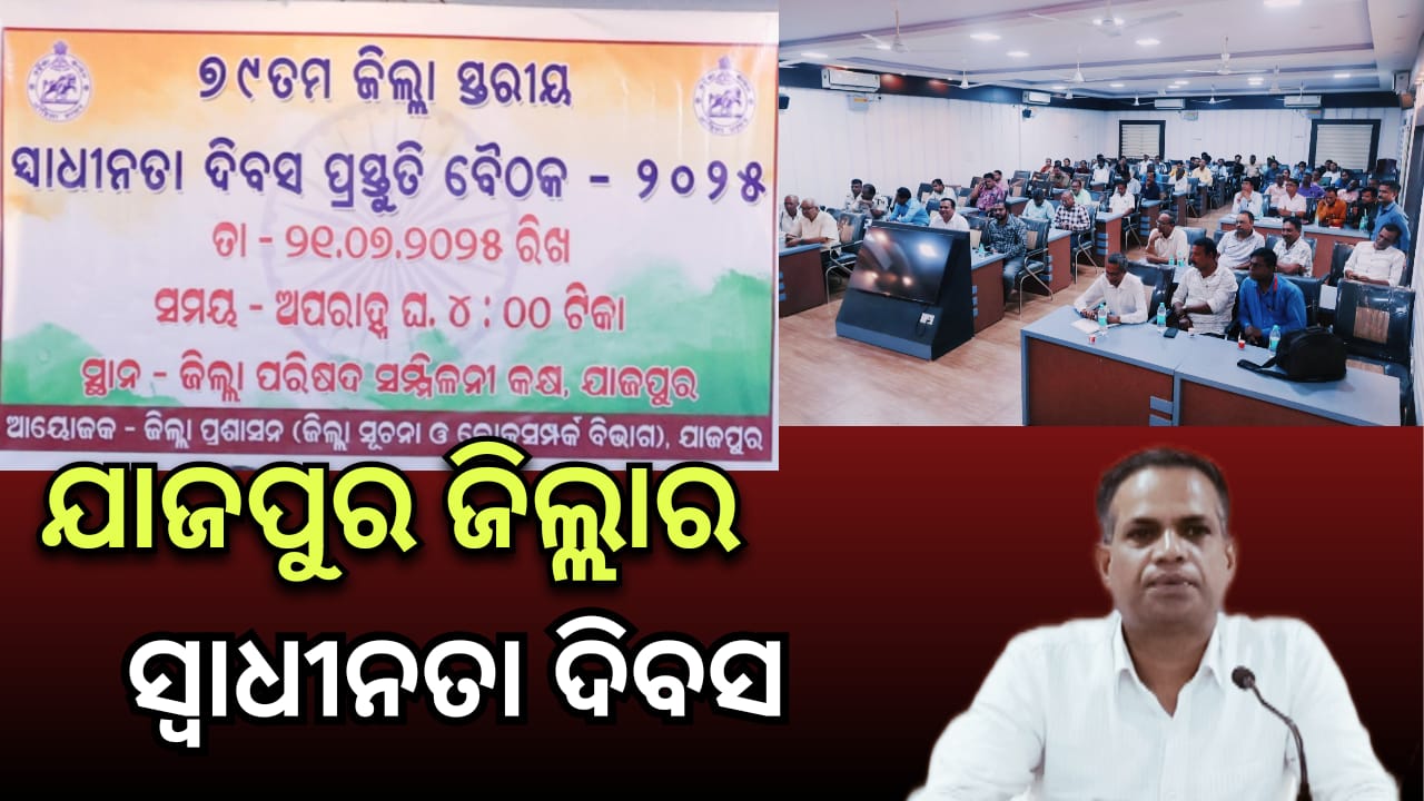 ୭୯ ତମ ଯାଜପୁର ଜିଲ୍ଲା ସ୍ତରୀୟ ସ୍ବାଧୀନତା ଦିବସ ପାଳନ ଉପଲକ୍ଷେ ପ୍ରସ୍ତୁତି ବୈଠକ ଅନୁଷ୍ଠିତ ।
