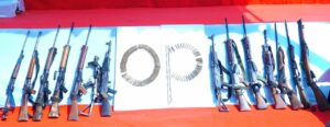 ଆତ୍ମସମର୍ପଣ ସମୟରେ ୧୪ଟି ଅସ୍ତ୍ର ଜବତ କରାଯାଇଛି, ଯାହା ମଧ୍ୟରେ ୨ଟି AK-47, ୫ଟି SLR, ୧ଟି INSAS, ୧ଟି ଷ୍ଟେନଗନ୍, ୧ଟି .303 ରାଇଫଲ୍, ୪ଟି ସିଙ୍ଗଲ୍ ଶଟ୍ ଗନ୍ ସହ ବହୁ ପରିମାଣର ଗୋଳାବାରୁଦ ରହିଛି। ଏହି ଅସ୍ତ୍ରଗୁଡ଼ିକ ଉପରେ ପ୍ରାୟ ୧୬ ଲକ୍ଷ ଟଙ୍କାର ପୁରସ୍କାର ଘୋଷିତ ଥିଲା।