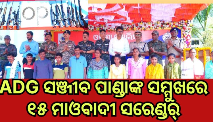 ଓଡ଼ିଶାରେ ମାଓବାଦ ବିରୋଧୀ ଅଭିଯାନରେ ଏକ ବଡ଼ ସଫଳତା ମିଳିଛି। ଆଜି ରାୟଗଡା ଜିଲ୍ଲା ପୁଲିସ କାର୍ଯ୍ୟାଳୟ (DPO) ରେ ଆୟୋଜିତ ଏକ ବିଶେଷ କାର୍ଯ୍ୟକ୍ରମରେ ୧୫ ଜଣ ହାର୍ଡକୋର୍ ମାଓବାଦୀ ଓଡ଼ିଶା ପୁଲିସର ADG (Anti-Naxal Operations) ଶ୍ରୀ ସଞ୍ଜୀବ ପାଣ୍ଡା, IPSଙ୍କ ସମ୍ମୁଖରେ ଆତ୍ମସମର୍ପଣ କରିଛନ୍ତି।